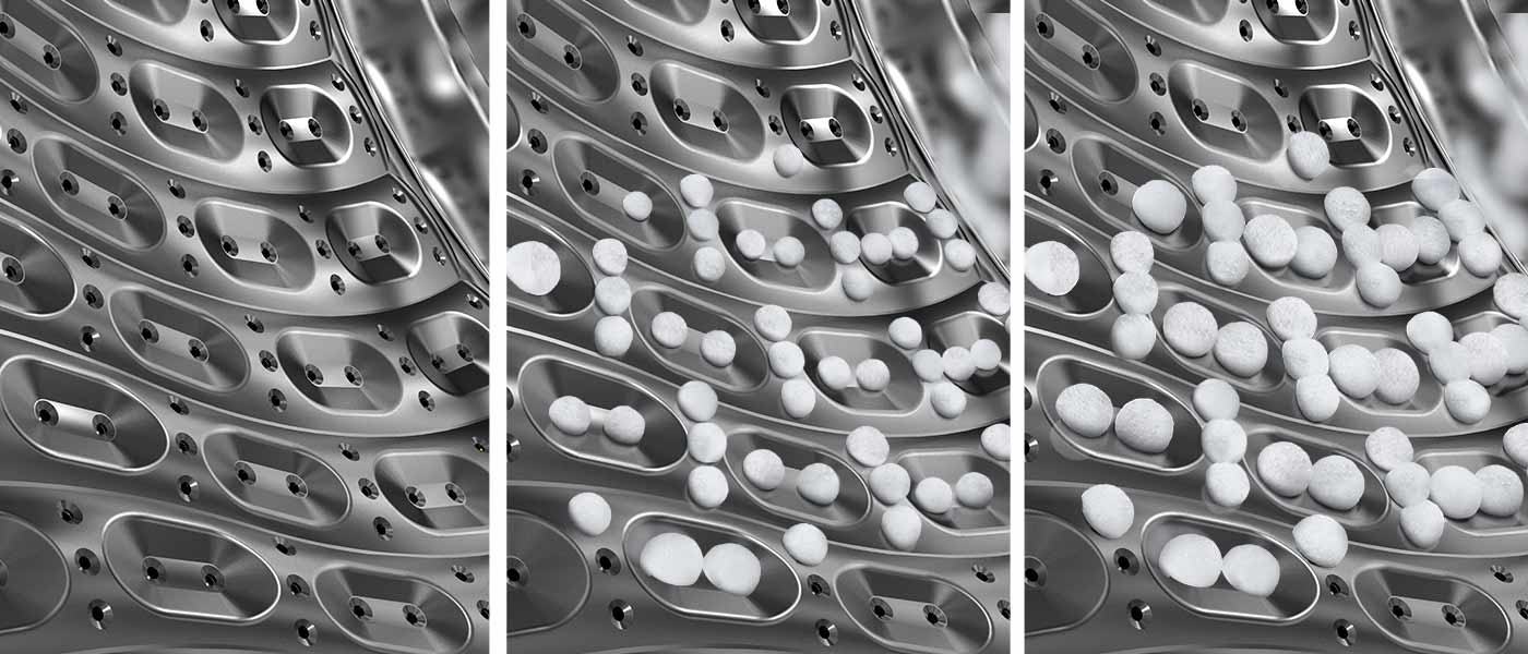 технологія EcoBubble™ дозволяє ефективно прати при низьких температурах*. Такою силою володіє активна піна, яка утворюється в результаті поєднання миючого засобу, води і порошку, а потім проникає через тканини, розчиняючи бруд. При цьому вона дбайливо ставиться до одягу, захищає її колір і текстуру. Таке рішення також є більш енергоефективним**.