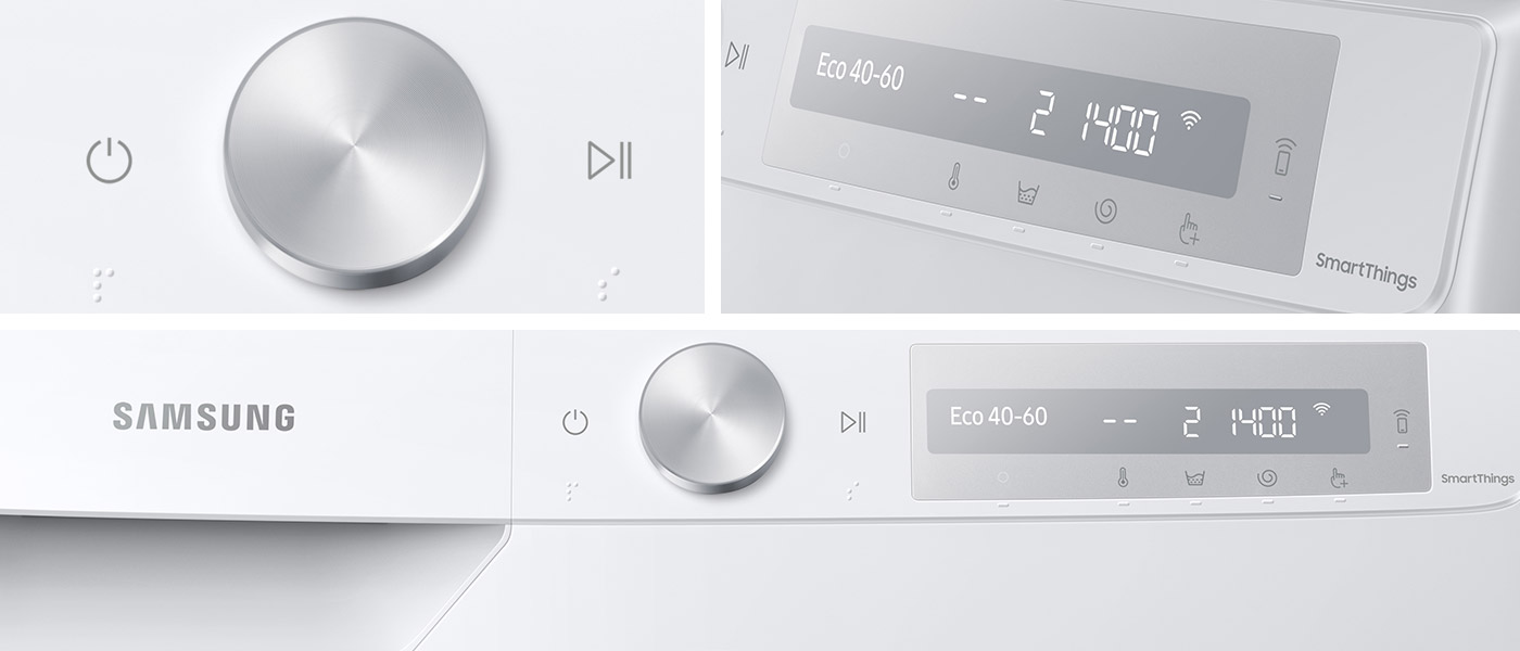 ми розробили сучасну панель AI Control, щоб полегшити вашу прання. Він запам'ятовує найбільш часто вибрані вами програми і на основі них персонализирует установки пральноїмашини. Він також запропонує вам оптимальну програму сушіння згідно з завершеним циклом прання. Ви також можете легко управляти пристроєм віддалено з додатка SmartThings*.