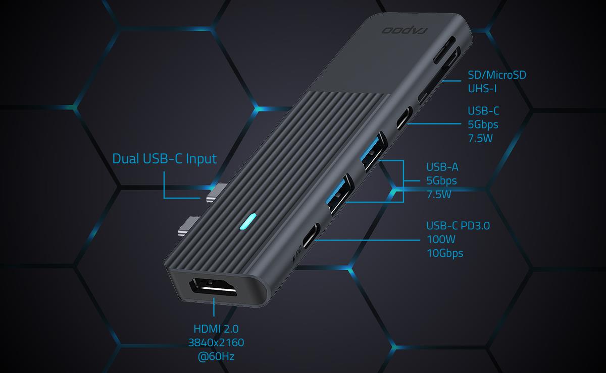 Пристрій забезпечує передачу даних на швидкості 5 і 10 Гбіт/с. Це забезпечує плавну передачу сигналу та файлів. Крім того, один з портів USB C забезпечує можливість швидкої зарядки будь-яких пристроїв за допомогою технології Power Delivery (100 Вт). Мультипорт через вхід HDMI забезпечує передачу аудіосигналів і сигналів зображення в якості Ultra HD (4K).