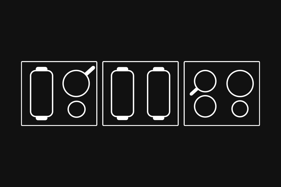 15 рівнів потужності нагріву, автоматична взаємодія з витяжкою (з обраною моделлю), функція Booster, таймер