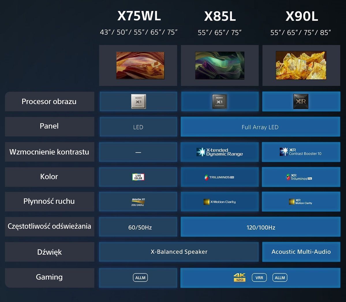 Показ фільму в кінотеатрі повинен подарувати нам емоції з найвищою якістю звуку. Ось чому X75WL оснащено технологією, яка тепер є невід’ємною частиною кінотеатру – Dolby Atmos.
