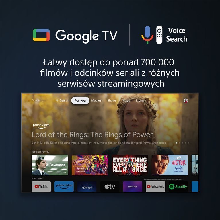 З X75WL ви отримаєте майже необмежений доступ до розваг із Google TV. Це понад 700 000 епізодів фільмів і серіалів, відсортованих відповідно до ваших інтересів із усіх потокових служб та інших програм4,5,6,7,8,9.
