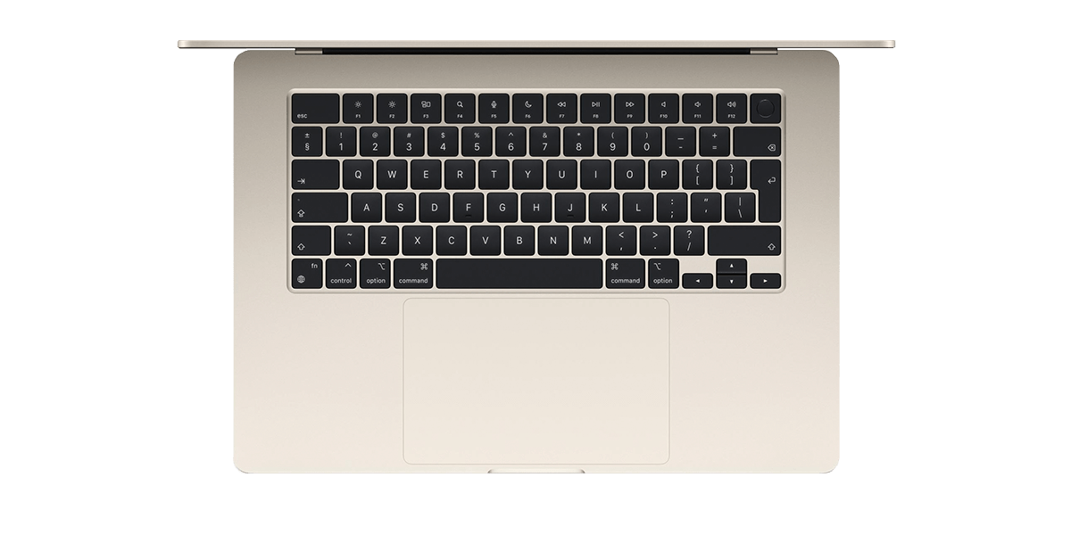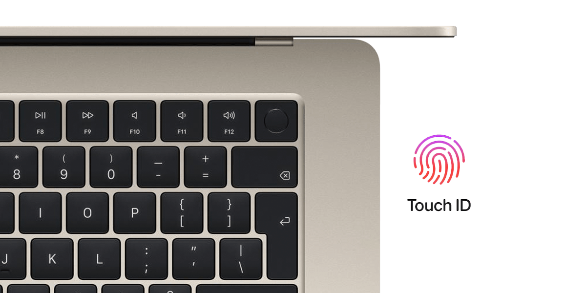 Важко переоцінити клавіатури Apple – ергономічні, інтуїтивно зрозумілі, нешкідливі для оточення, що особливо важливо при роботі у відкритих офісних приміщеннях. У випадку з 15-дюймовим MacBook Air 2023 ми маємо справу з Magic Keyboard – безшумною клавіатурою з підсвічуванням, повнорозмірними функціональними клавішами і, звичайно ж, зчитувачем Touch ID. Це захищає комп’ютер від неавторизованих осіб, але також полегшує для власника вхід і авторизацію за допомогою відбитка пальця.
