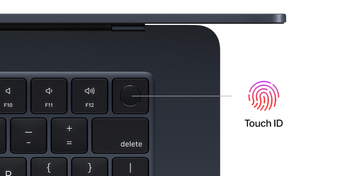 Важко переоцінити клавіатури Apple – ергономічні, інтуїтивно зрозумілі, нешкідливі для оточення, що особливо важливо при роботі у відкритих офісних приміщеннях. У випадку з 15-дюймовим MacBook Air 2023 ми маємо справу з Magic Keyboard – безшумною клавіатурою з підсвічуванням, повнорозмірними функціональними клавішами і, звичайно ж, зчитувачем Touch ID. Це захищає комп’ютер від неавторизованих осіб, але також полегшує для власника вхід і авторизацію за допомогою відбитка пальця.