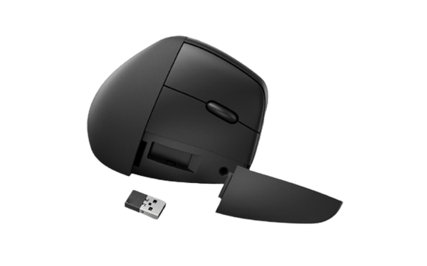 Вбудоване відділення приймача дозволяє безпечно зберігати його на самому пристрої під час використання з’єднання Bluetooth або під час подорожі. Це означає, що вам ніколи не доведеться турбуватися про втрату приймача, і ви завжди зможете мати його під рукою, коли вам потрібно буде повторно підключити HP 920 Ergo Vertical до комп’ютера.