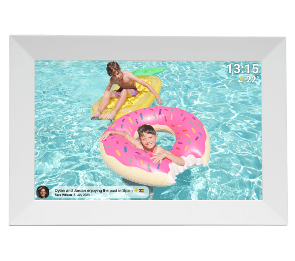 За допомогою програми Frameo ви можете ділитися своїми фотографіями. Просто додайте рамку до програми, і фотографії можна надсилати з будь-якої точки світу в скільки завгодно рамок! Більше того, завдяки можливості запрошувати друзів та родину до спільного створення галереї, кожен із них може додавати власні фотографії. Спогади ще ніколи не були такими близькими – для вас і ваших близьких!
