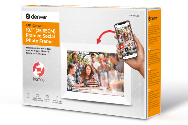 Підключайтеся до світу та діліться спогадами за допомогою вбудованого Wi-Fi (2,4 ГГц). Denver Frameo PFF-1024W дозволяє легко надсилати фотографії з будь-якої точки світу безпосередньо на вашу раму – все, що вам потрібно, це доступ до Інтернету. Ви можете миттєво ділитися останніми моментами з родиною та друзями незалежно від відстані.