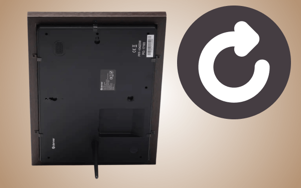 Представлена цифрова рамка забезпечує повну гнучкість використання, допускаючи як вертикальну, так і горизонтальну орієнтацію. Налаштуйте відображення фотографій і відео відповідно до їхньої природної орієнтації або розташування простору. Рама має кріпильні отвори для підвішування на стіну. У комплект також входить практична підставка для розміщення на шафі або столі.