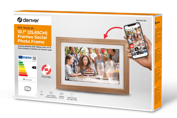 Denver Frameo PFF-1042LW - пристрій, що імітує класичну дерев'яну раму, але оснащений 10,1-дюймовим IPS-екраном з роздільною здатністю 1280x800. Він дозволяє проводити інтерактивні слайд-шоу та відтворювати відео зі звуком.