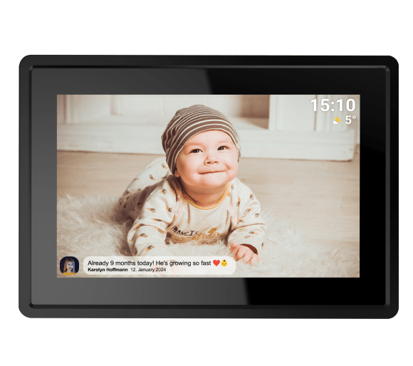 За допомогою програми Frameo ви можете ділитися своїми фотографіями. Просто додайте рамку до програми, і фотографії можна надсилати з будь-якої точки світу в скільки завгодно рамок! Більше того, завдяки можливості запрошувати друзів та родину до спільного створення галереї, кожен із них може додавати власні фотографії. Спогади ще ніколи не були такими близькими – для вас і ваших близьких!