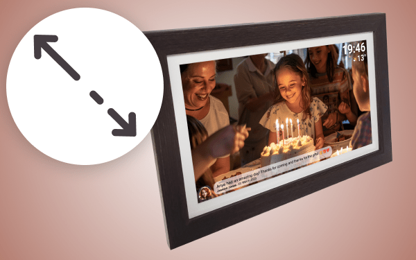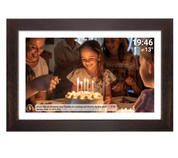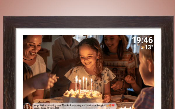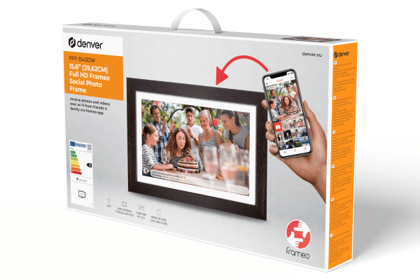 Denver Frameo PFF-1543DW — елегантний пристрій із 15,6-дюймовим екраном Full HD і корпусом під дерево. Завдяки Wi-Fi, вбудованому динаміку та спеціальному додатку Frameo цифрова рамка дозволяє передавати та відображати фотографії та відео.