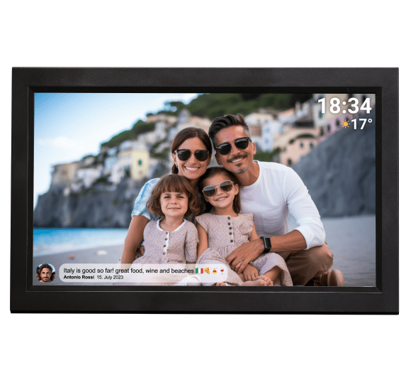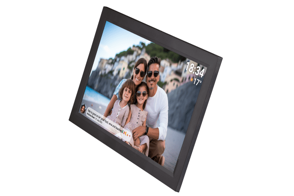 Ідея для сучасного декору інтер'єру? Denver Frameo PFF-1503B, інноваційна цифрова рамка, оснащена 15,6-дюймовим IPS сенсорним екраном з роздільною здатністю Full HD (1920x1080)! Завдяки вбудованому модулю Wi-Fi ви можете бездротовим способом надсилати фотографії та короткі відео прямо на свій пристрій!