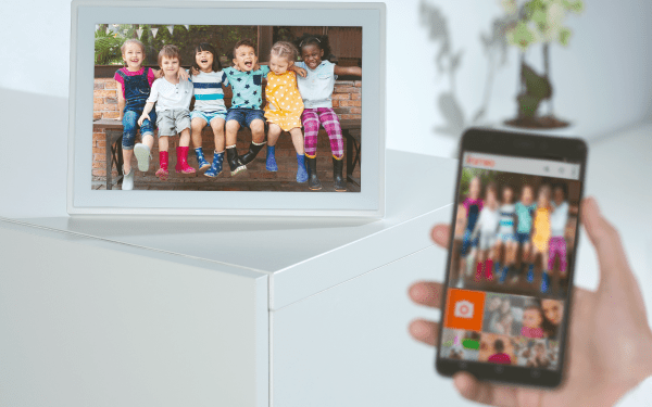 Спеціальна програма Frameo, готова для завантаження для пристроїв Android та iOS, дозволяє легко додавати фотографії