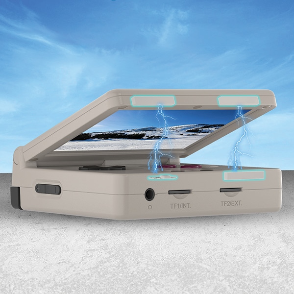 Anbernic RG35XXSP у сірій версії - це портативна ігрова консоль, яка вражає своїм елегантним мінімалістичним виглядом, викликаючи спогади про класичні ігрові пристрої. Легкий, компактний корпус виготовлений із міцного пластику, і його зручно тримати навіть під час тривалих сеансів. Стильна біла колірна гамма надає консолі сучасний вигляд, який сподобається як молодим, так і старшим геймерам, які шукають класичне обладнання в новому виданні.