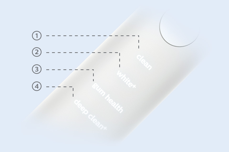 і інтенсивності у відповідності з типом наконечникавиберіть кращий наконечник, і зубна щітка автоматично підбере відповідну програму очищення і інтенсивність.