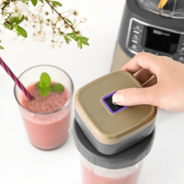 спеціальна насадка блендера дозволяє висмоктувати з його центру повітря. Для досягнення найкращих результатів використовуйте його 2 рази — спочатку перед змішуванням, щоб повітря не проникало в коктейль. Це гарантує, що напій не розкладається і не втратить свої властивості протягом тривалого часу. Вдруге видаліть повітря при закручуванні чашки (якщо ви хочете взяти її на роботу або в школу). Якщо у вільної поверхні між коктейлем і кришкою немає кисню, напій довше залишається свіжим.