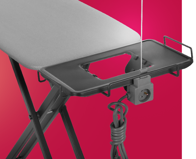 Розетка з подовжувачем і підставка зі зручним тримачем шнура – практичні рішення, завдяки яким вам не доведеться шукати найближчу розетку або турбуватися про довжину шнура. Забудьте про заплутані кабелі – з прасувальною дошкою EDP004R робота стане приємнішою та ефективнішою.