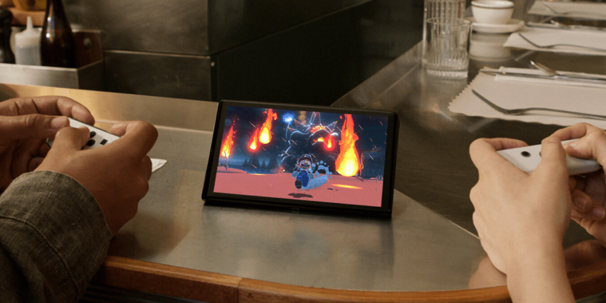 Nintendo Switch – OLED має широку регульовану підставку, яку можна встановити під будь-яким кутом. Таким чином ви можете зручно грати в багатокористувацькі ігри в настільному режимі. Тоді всі гравці мають чіткий огляд екрана, оскільки вони можуть повертати консоль на підставці. У такій грі також корисна можливість спільного використання контролерів.