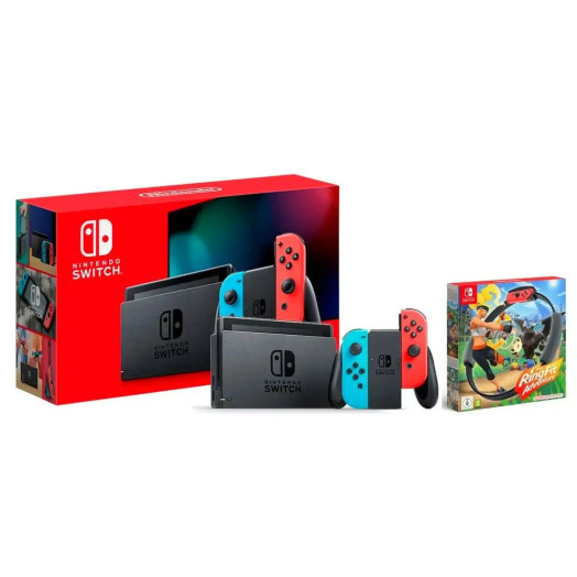 Консоль Nintendo Switch, 2 контролери Joy-Con, док-станція, 2 браслети Joy-Con, ручка Joy-Con, адаптер змінного струму, кабель HDMI, гра