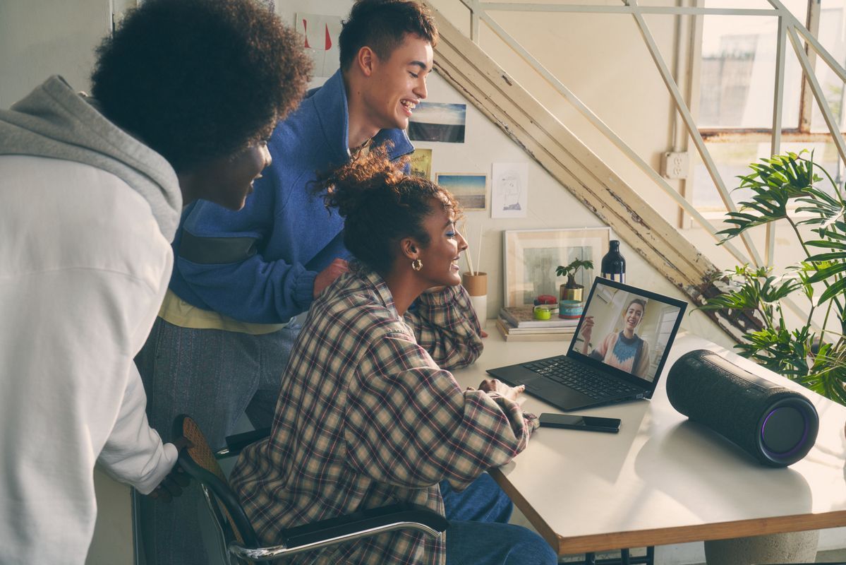 Використовуйте бездротовий динамік SRS-XG300 для спілкування з друзями або колегами. Завдяки функції придушення луни значно покращується якість зв’язку та зменшуються перешкоди. Крім того, за допомогою функції багатоточкового з’єднання ви можете об’єднати два пристрої Bluetooth з динаміком одночасно, що підвищує вашу гнучкість і зручність.