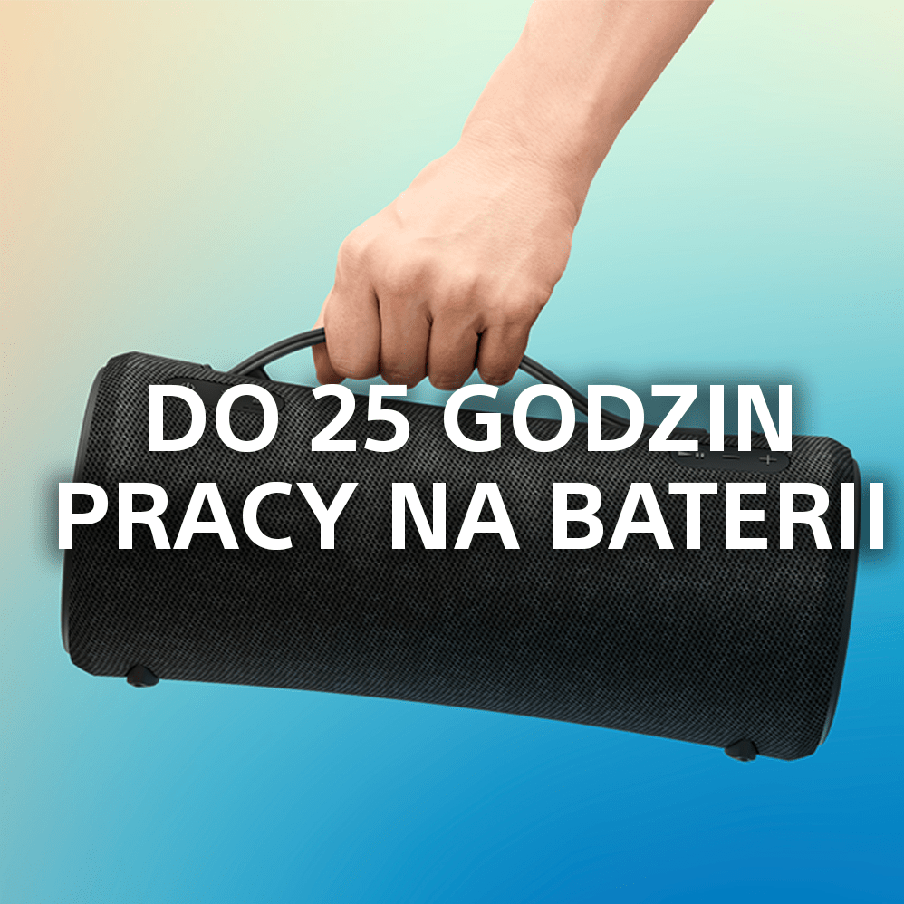 Цей динамік Sony забезпечує надзвичайно потужний високоякісний звук із глибокими басами завдяки передовим динамікам X-Balanced, чудовим високочастотним динамікам і пасивним радіаторам. Якщо ви хочете ще більше підсилити баси, просто натисніть кнопку MEGA BASS!
