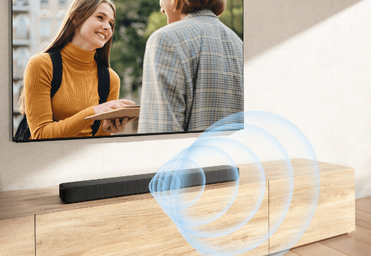 Завдяки вбудованому подвійному сабвуферу для глибоких басів і трьом переднім динамікам X-Balanced, включаючи центральний динамік для чіткого, чіткого діалогу, HT-S2000 забезпечує чудовий звук для будь-якого контенту.
