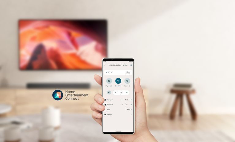 Нова програма Sony для смартфонів Home Entertainment Connect* забезпечує просте налаштування та керування. Саундбар також постачається з простим пультом дистанційного керування для швидкого та легкого керування.